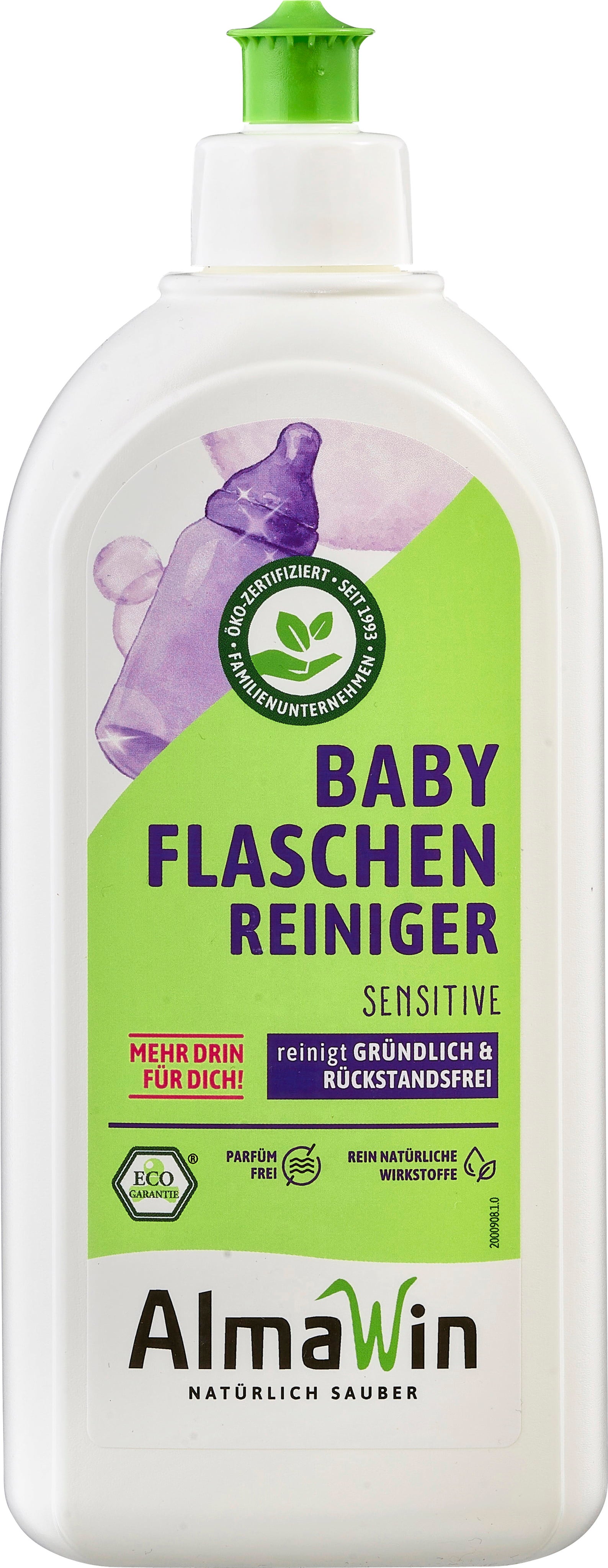 Čistilo za otroške stekleničke AlmaWin učinkovito odstrani mlečne beljakovine, ostanke hrane in soka iz stekleničk iz PES, stekla, PP ali PA. Uporablja se lahko tudi za čiščenje pralnih igrač, otroške posode ali dud.