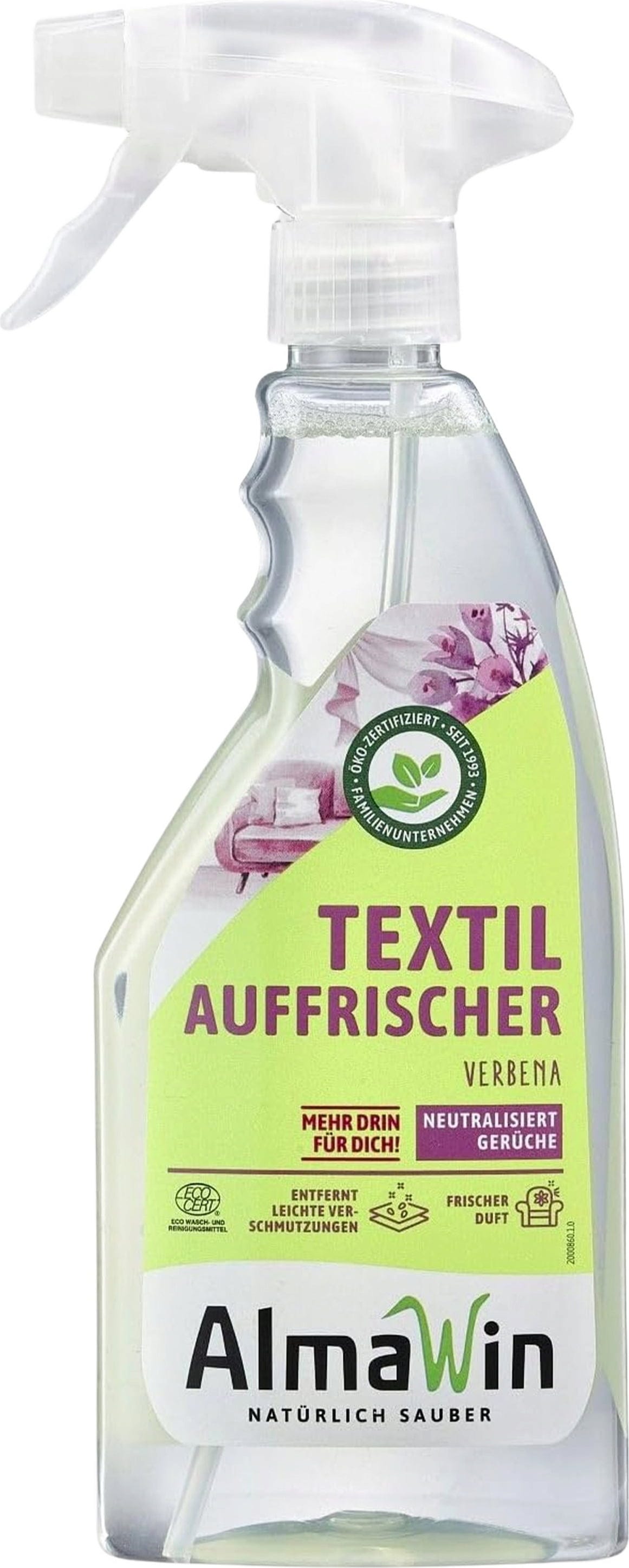 Osvežilec tekstila AlmaWin ne odstrani le rahle umazanije, temveč tudi v hipu nevtralizira neprijetne vonjave. Idealen je za oblazinjeno pohištvo, preproge in tekstilne površine ter navdušuje s svežim vonjem verbene.