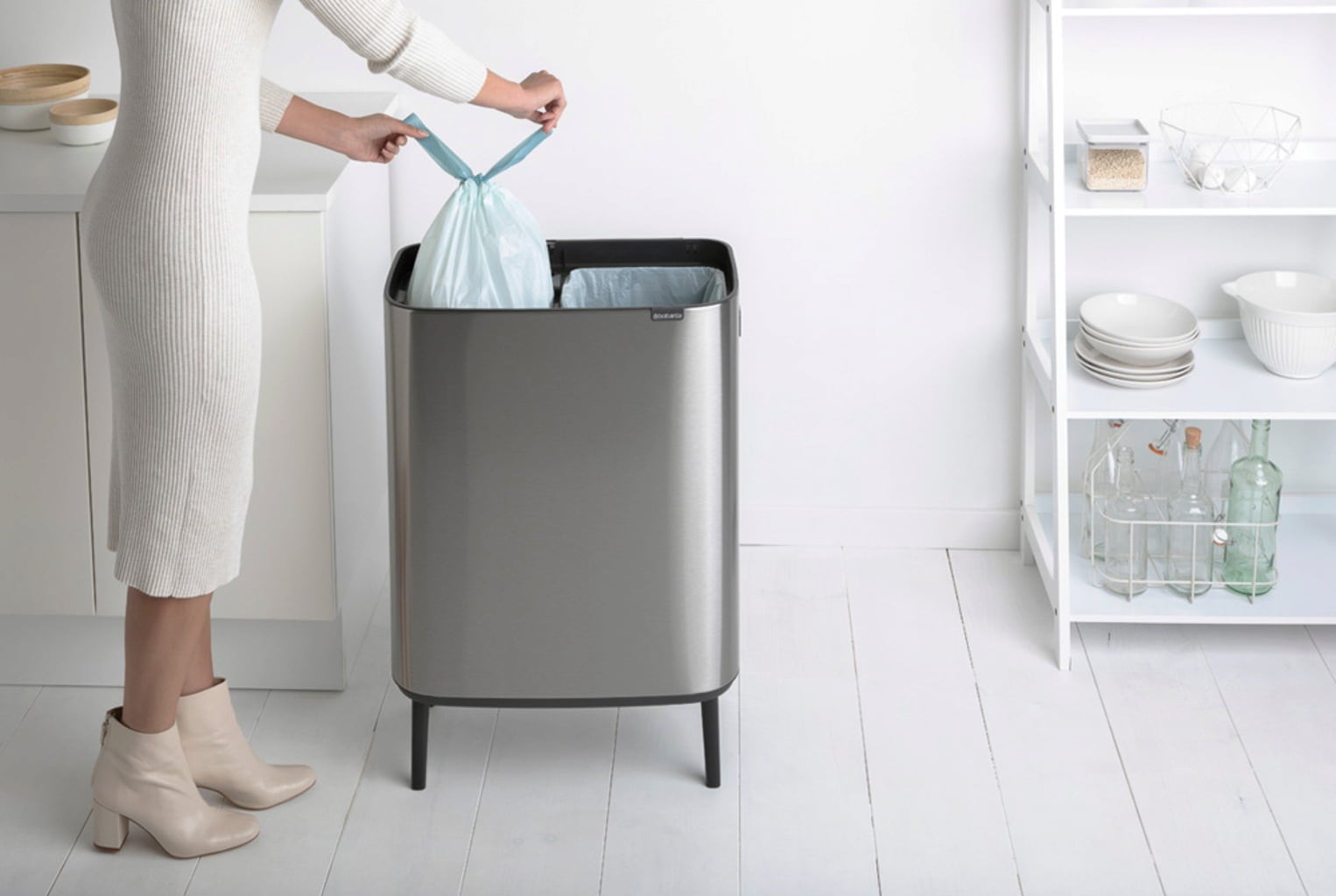Ekskluziven koš za smeti za elegantno odlaganje smeti. S svojo privlačno čisto obliko se harmonično ujema z najrazličnejšimi slogi notranje opreme in je elegantno privlačen v kuhinji, kopalnici, dnevni sobi ali pisarni. Tako lahko svoj življenjski prostor nadgradite na edinstven način.