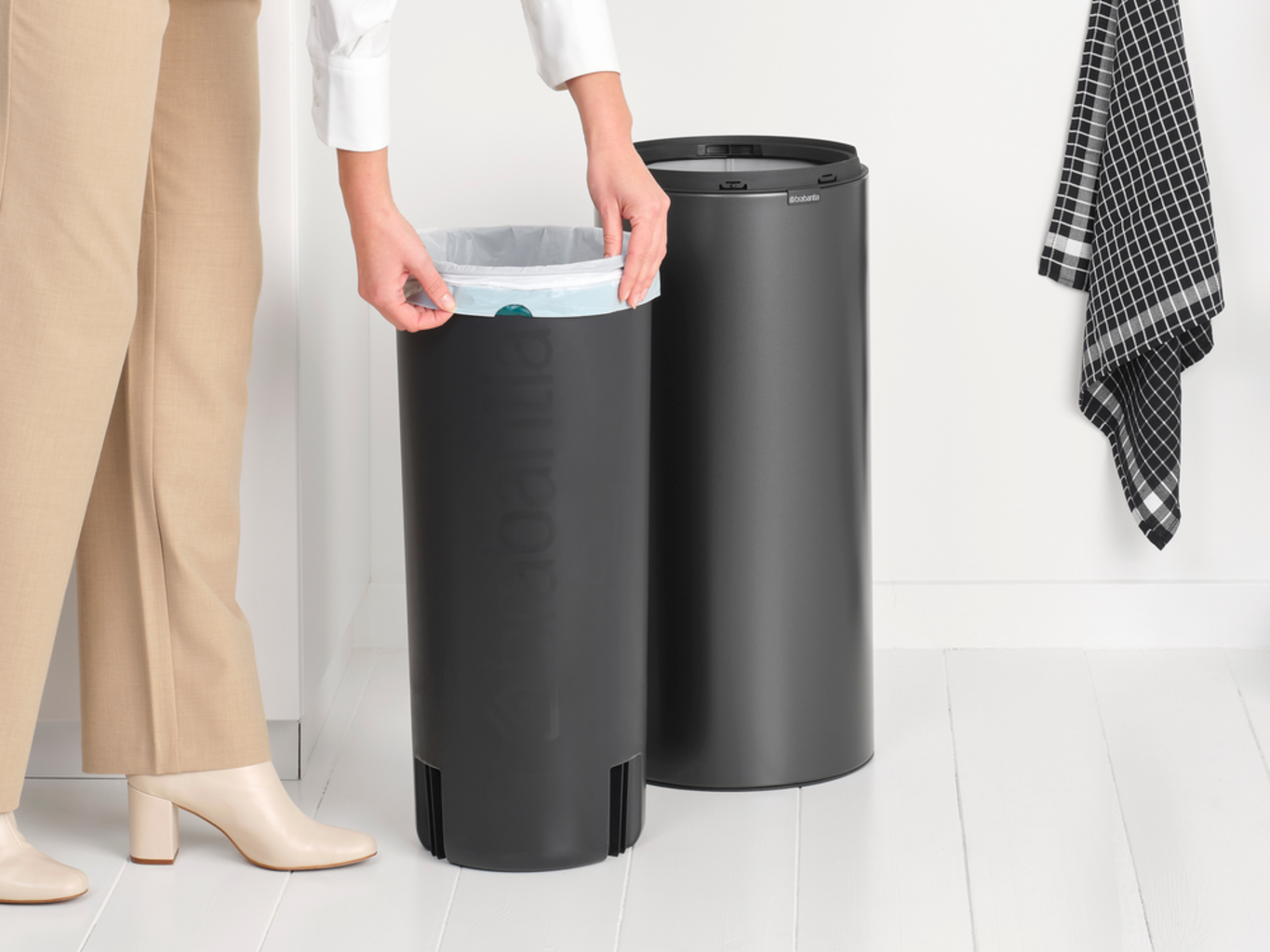 - Za popolno ujemaje in enostavno uporabo, so na voljo ujemajoče Brabantia vrečke z vrvico (oznaka G).