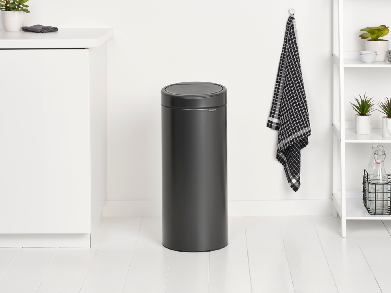 Edinstven koš za smeti navdušuje s svojo elegantno obliko in inovativno odpiralnim mehanizmom. Že z najmanjšim dotikom lahko pokrov odprete tiho in nežno. Poleg higiene, sistem mogoča tudi enostavno zamenjavo vrečke in čiščenje..