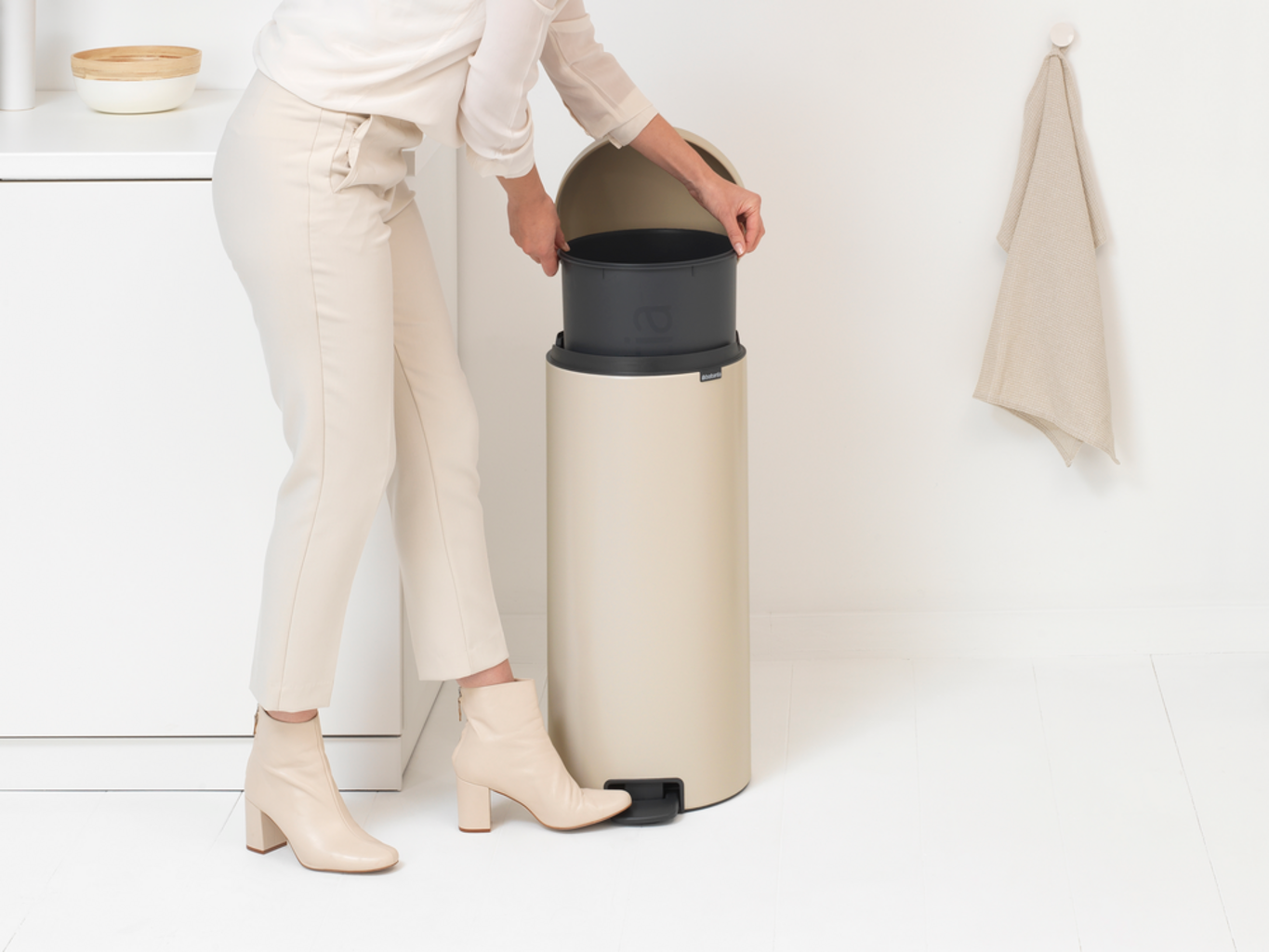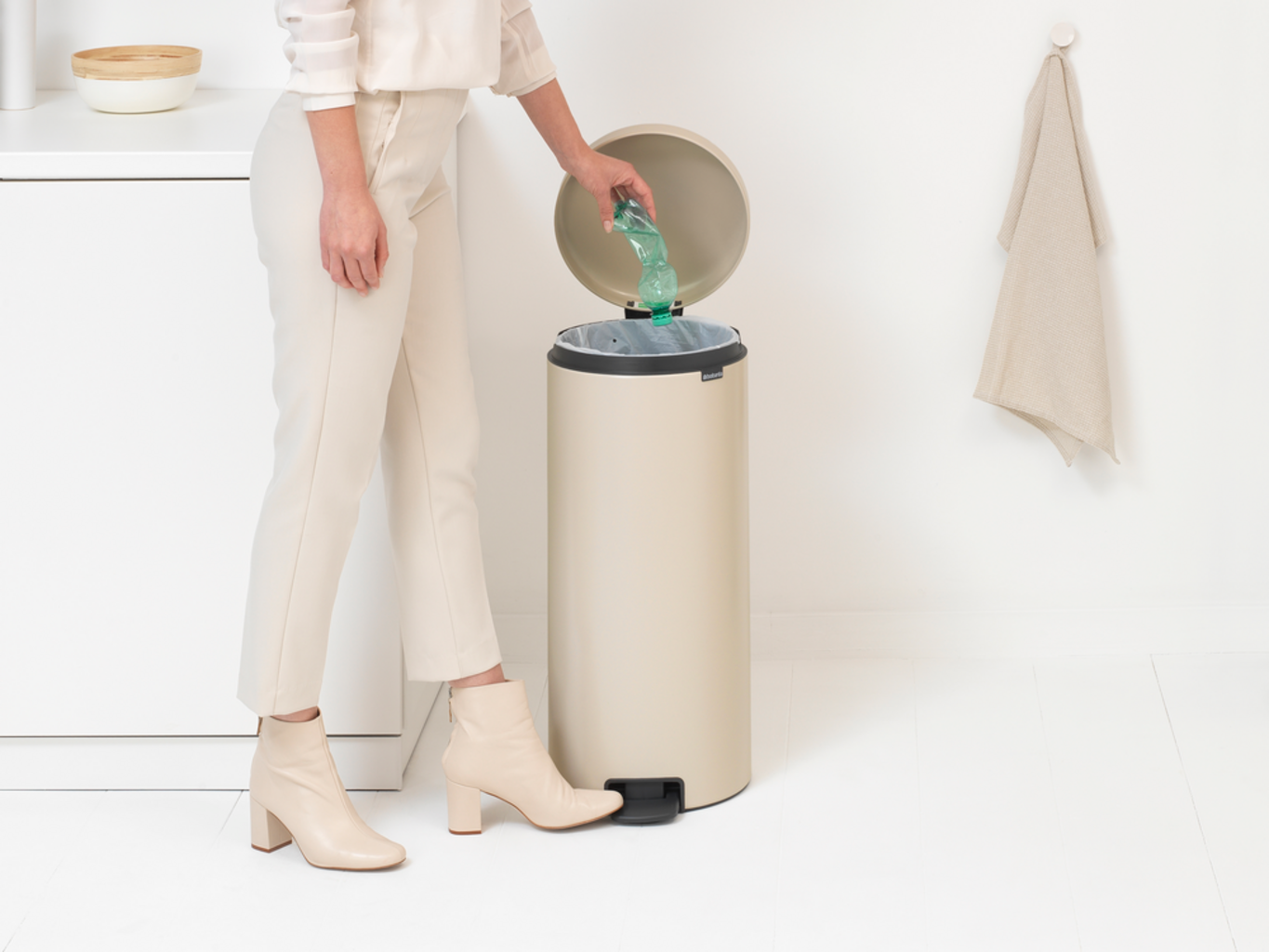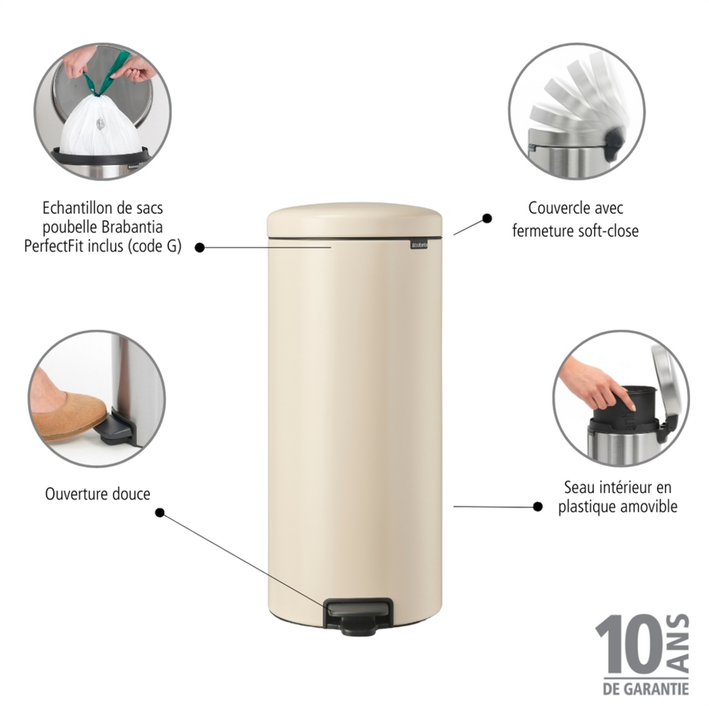 brabantia Koš za smeti s pedalom 30 L s plastičnim vložkom, Soft Beige