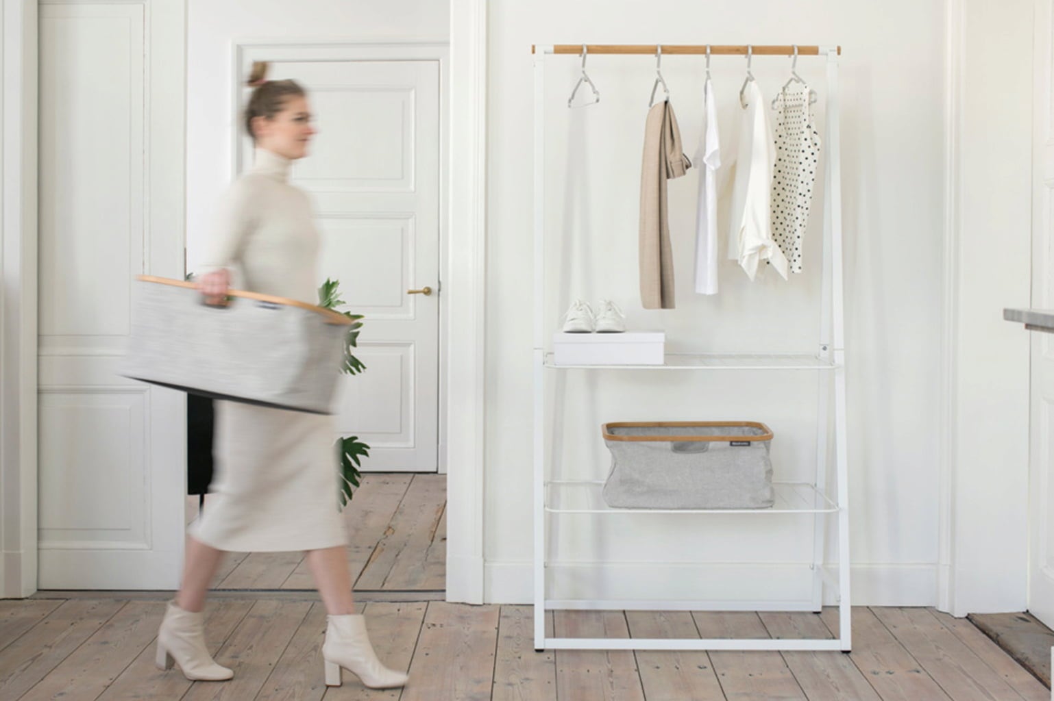 Ali želite shraniti, prezračiti ali posušiti oblačila? Stojalo za oblačila „Linn“ je idealna rešitev za različne namene. Postavite ga lahko v predprostor, da hitro pospravite oblačila, ali v kopalnico, da posušite perilo, v spalnico, da skrbno shranite čevlje in torbe, kamor koli želite, je vsestranski in je videti moderno in imenitno.