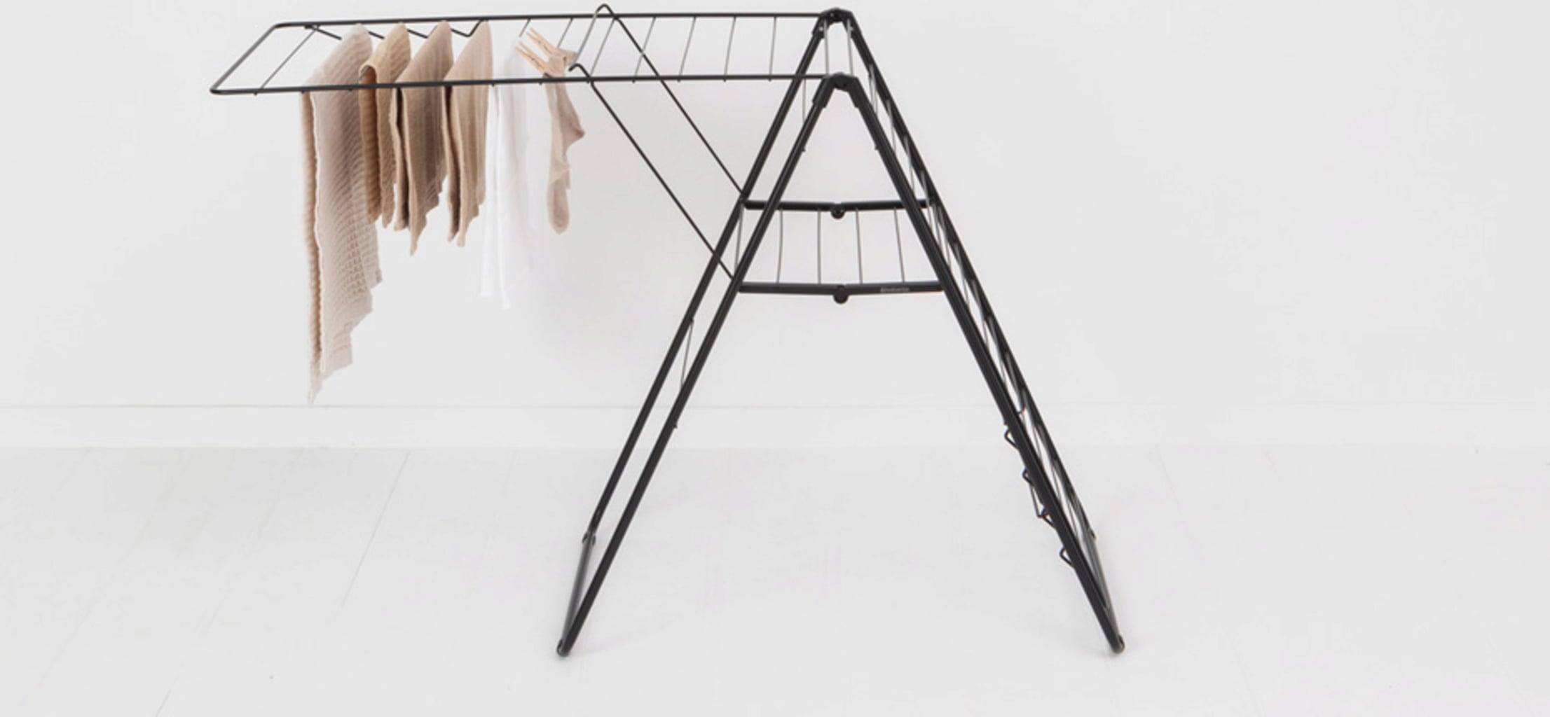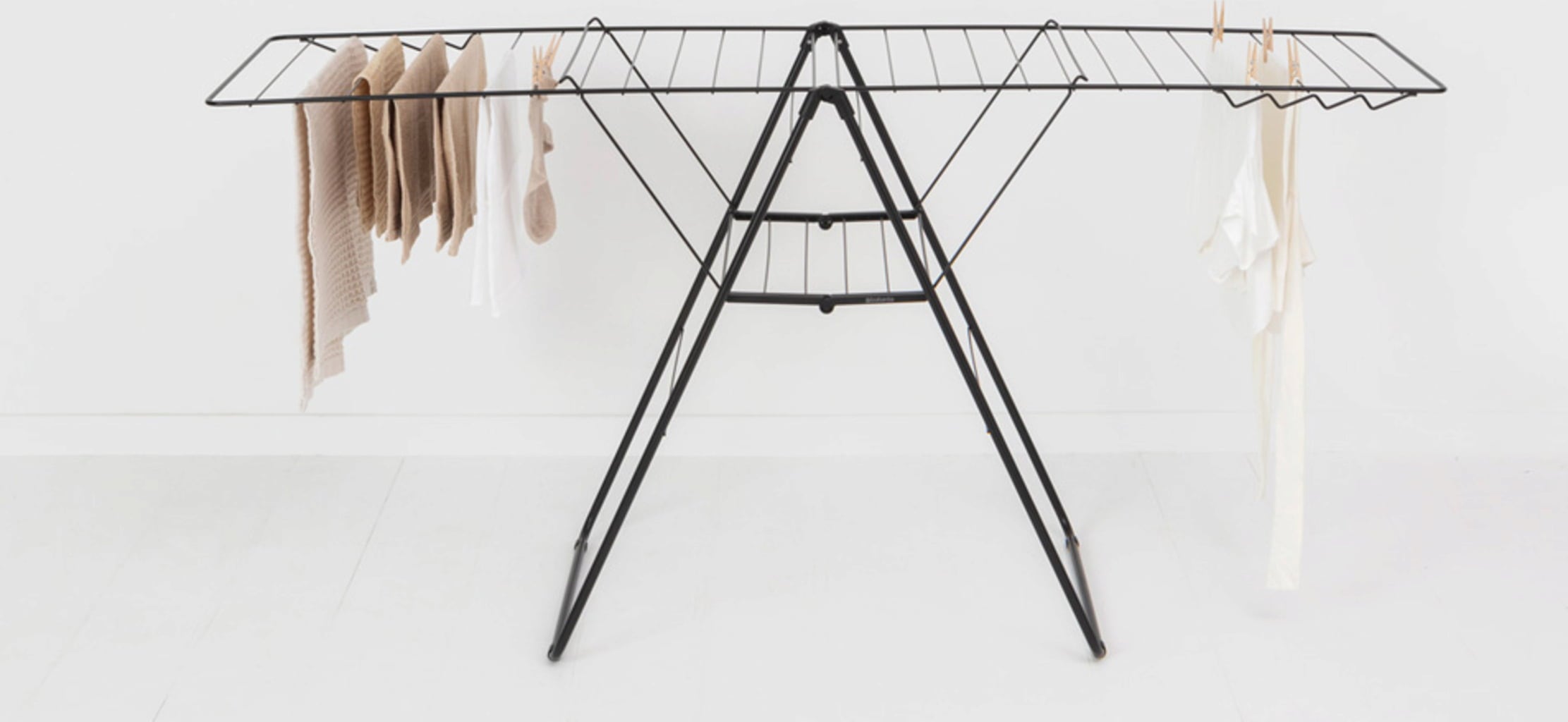 Kompaktno stojalo za oblačila iz trpežnega jekla ne navdušuje le z visokokakovostnimi materiali in izdelavo, temveč predvsem s pametno zasnovo s številnimi praktičnimi in funkcionalnimi detajli. Ponuja do 25 metrov prostora za majhne in večje kose perila, zaradi prilagodljivih kril je izjemno prilagodljivo, tako ga lahko enostavno zložite in pospravite, da prihranite prostor.