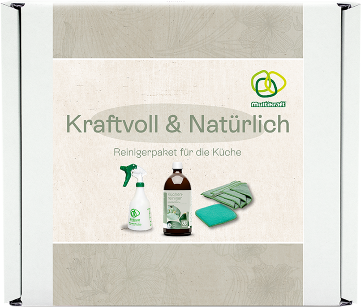 Kuhinjski set "Strong & Natural" prinaša v vsako kuhinjo higiensko svežino in sijaj brez lis. Probiotično večnamensko čistilo za kuhinjo zanesljivo odstrani maščobo in trdovratno umazanijo, razpršilna steklenička Foxy Plus in dodatki ReinZeit pa zagotavljajo popolne rezultate - preprosto, praktično in trajnostno.