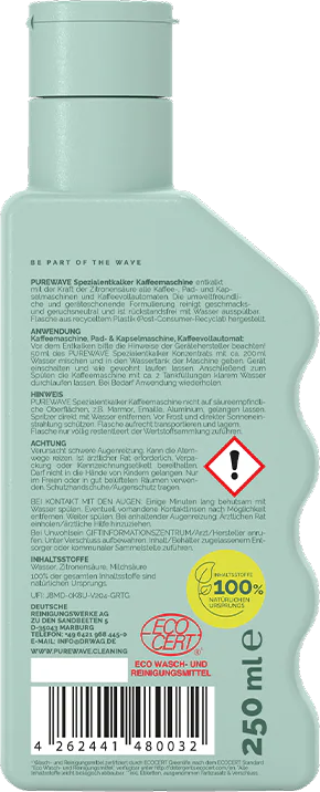 PUREWAVE Posebno sredstvo za odstranjevanje vodnega kamna za kavne avtomate, 250 ml
