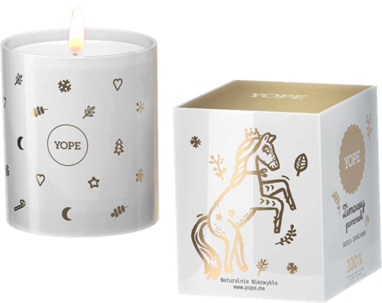 Dišeča sveča Winter Morning iz podjetja YOPE je izdelana iz 100-odstotnega sojinega voska in v vašem domu oddaja nežen vonj vanilije in vijolice. Ker ima sojin vosek nizko tališče, sveča gori še posebej dolgo.